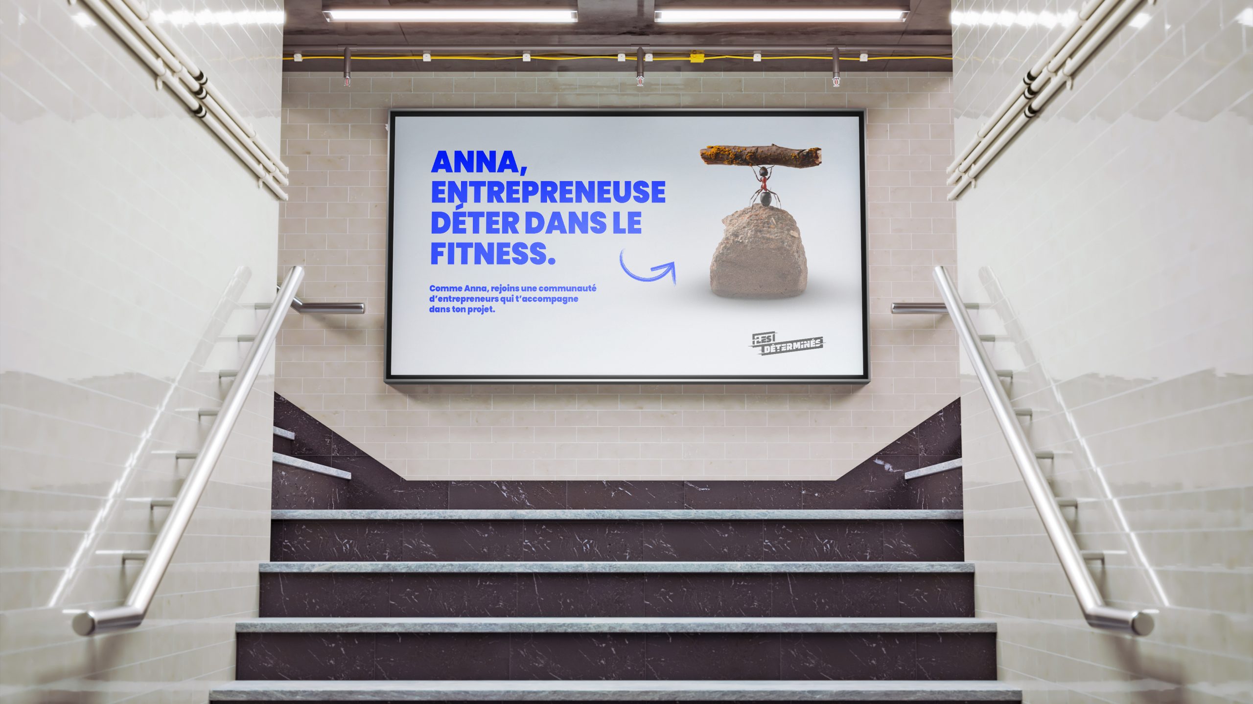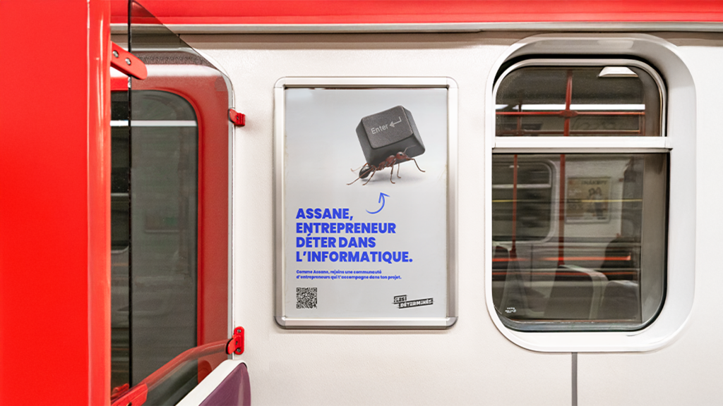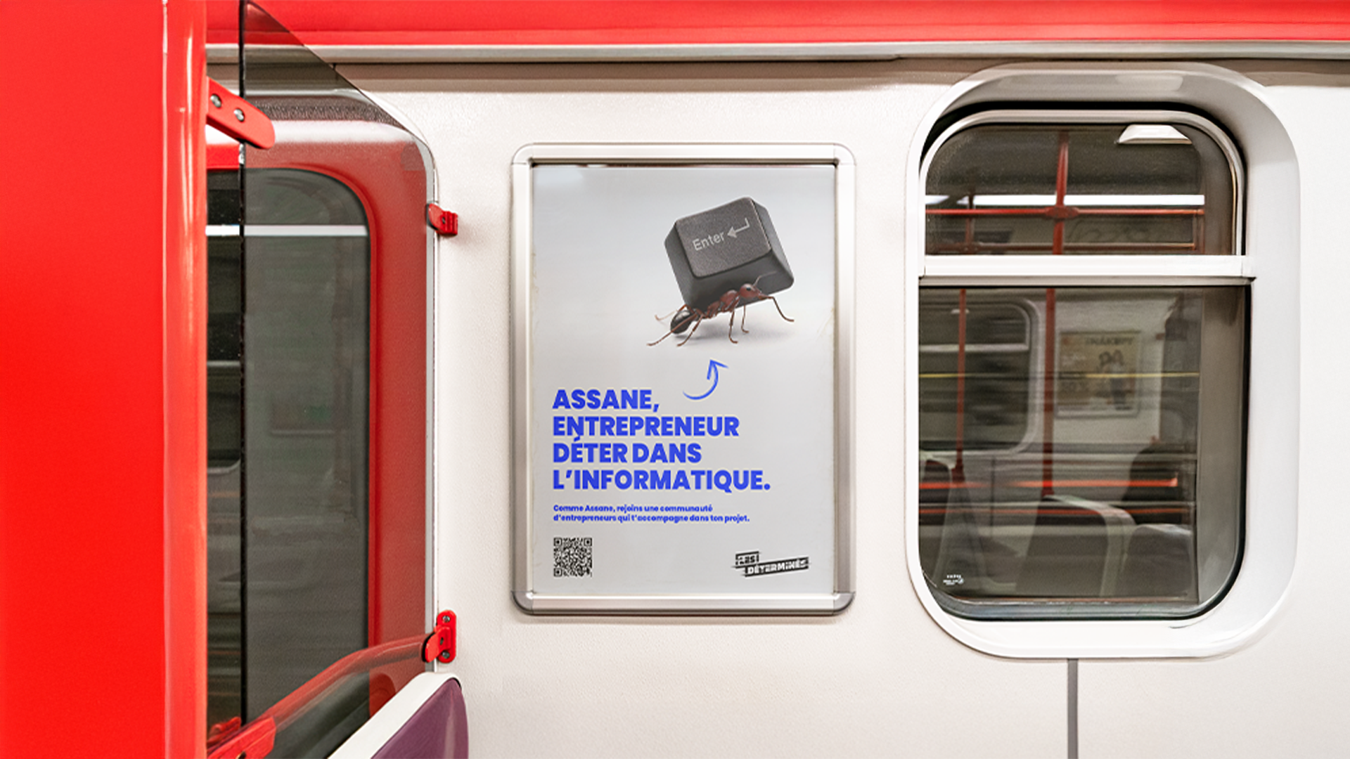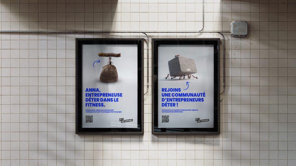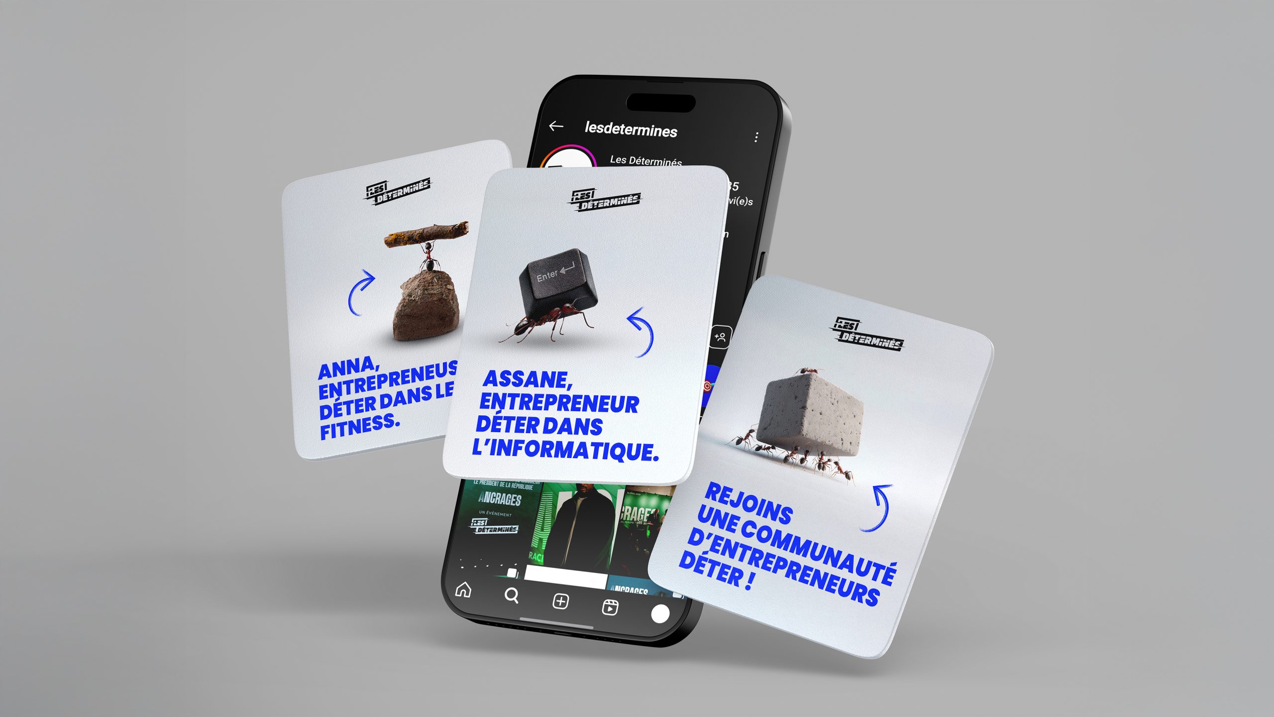 Ce projet a été réalisé dans le cadre du concours étudiants du Club des DA 2025. Le brief : faire connaître l’association Les Déterminés aux jeunes des quartiers populaires et des zones rurales ayant un projet entrepreneurial. L’enjeu était double : capter l’attention de cette cible, tout en valorisant l’esprit d’entraide, d’initiative et de détermination qui anime l’association.